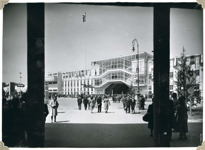 Veduta esterna del palazzo delle nazioni alla Fiera Campionaria di Milano del 1948