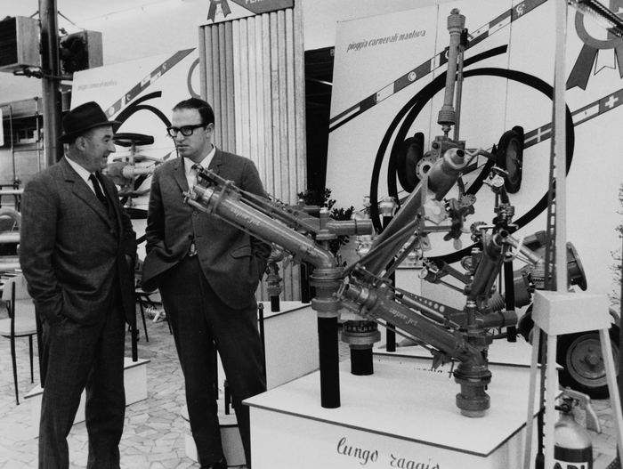 Irrigatori a pioggia in esposizione alla Fiera Campionaria di Milano del 1970